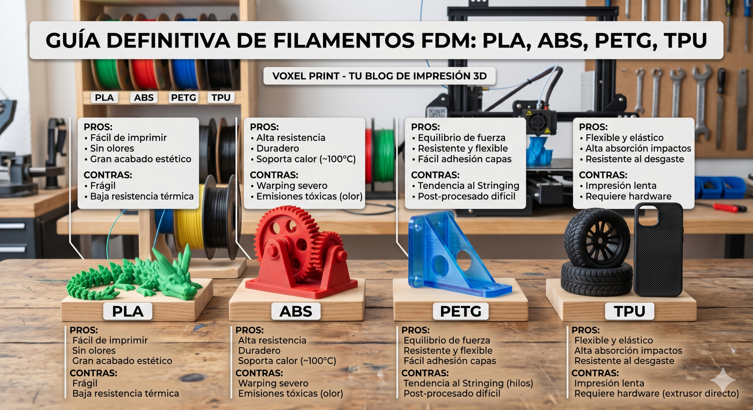 Guía Definitiva de Filamentos FDM: ¿Qué material elegir para tu próxima impresión en 3D?